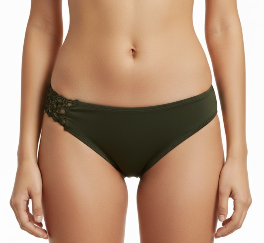 Becca Dark Green Bayleaf Siren Eyelet Hipster Women Bikini Swim Bottom (L) NWT