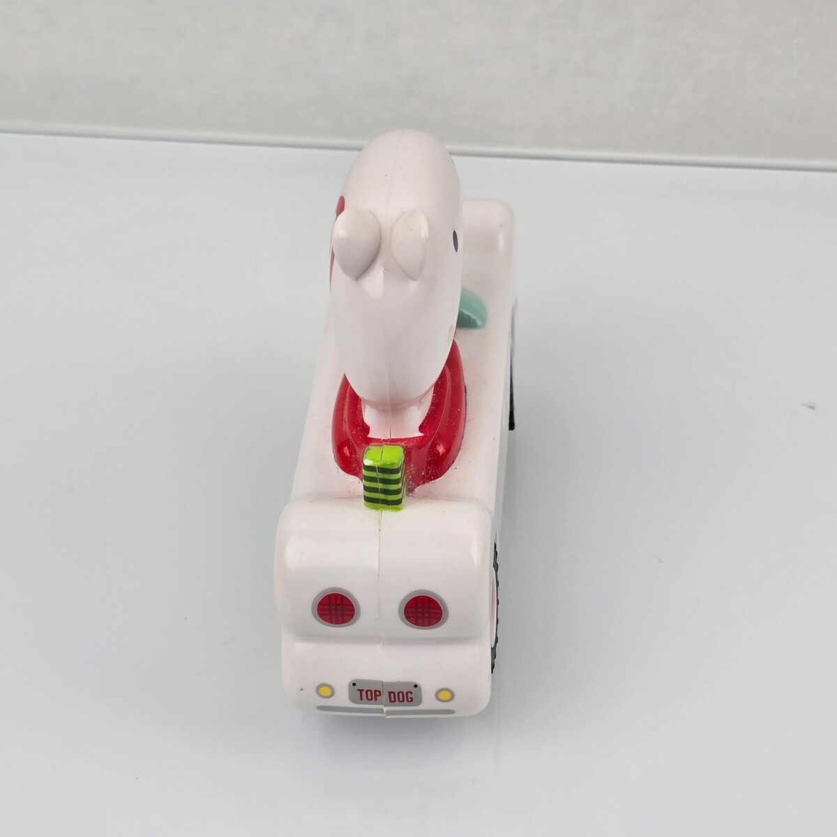 Keywords: bullseye dog, mascot, dog toy, race car, collectible, promotional, dog lover, car toy, dog car, racing, red accents, white car, target exclusive