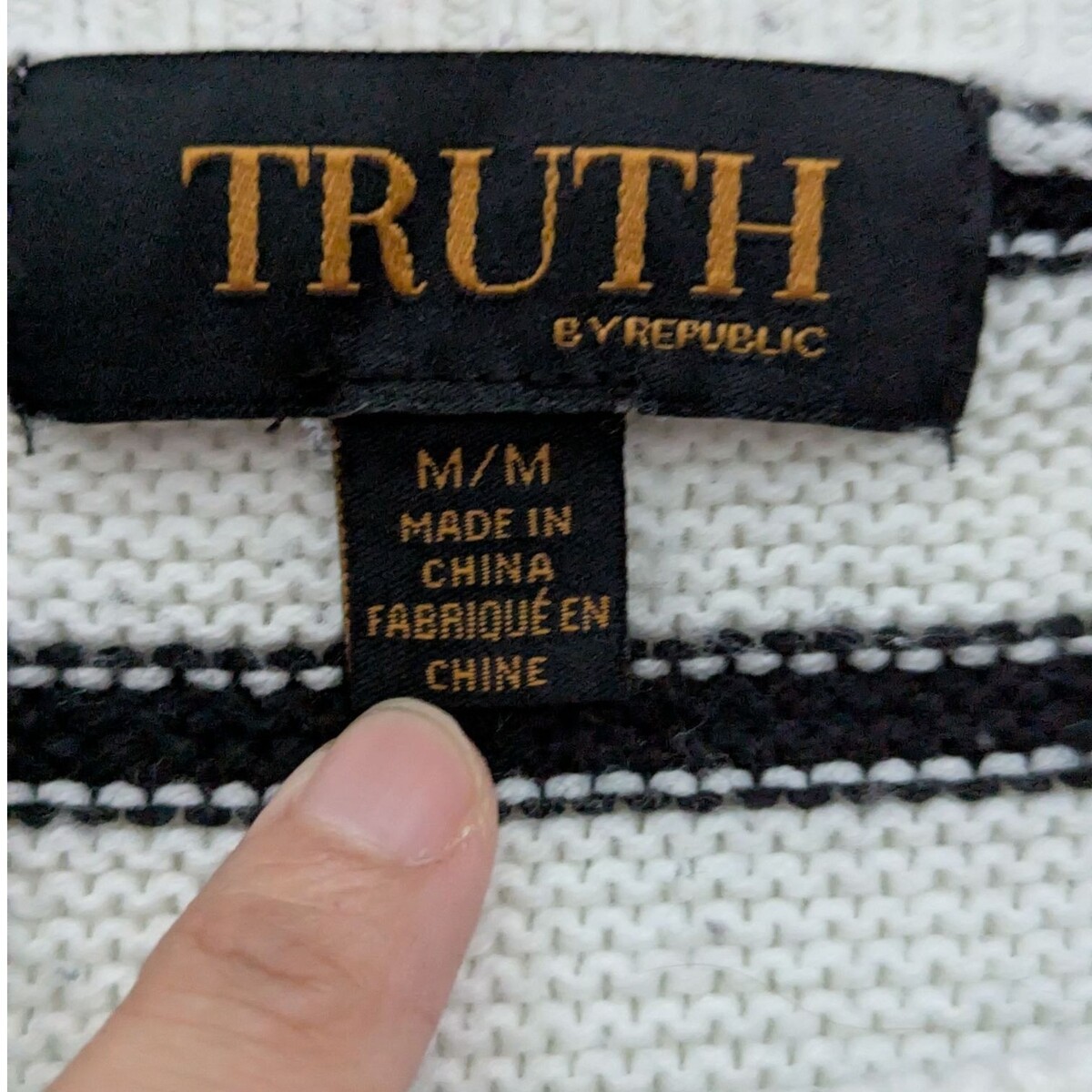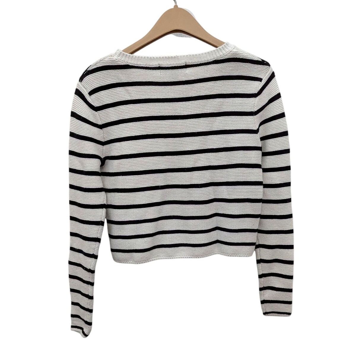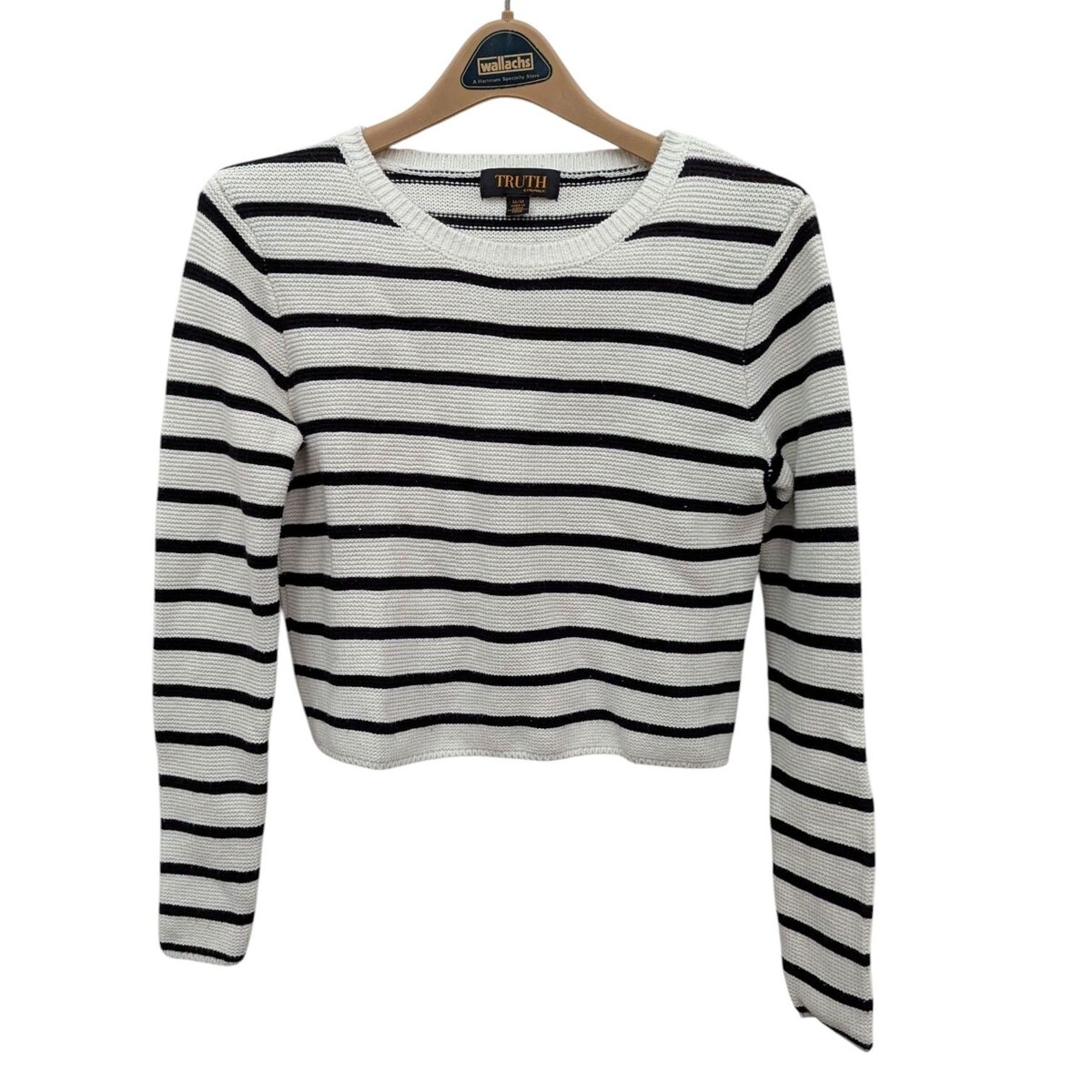 Truth By Republic Black White Striped Crop Sweater Size Medium Crew Neck Cotton