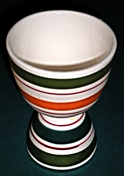 Cute Classic Egg Holder is muti-colored. It has a small chip on the rim but other wise this is a cool egg holder. If you have any questions please contact me