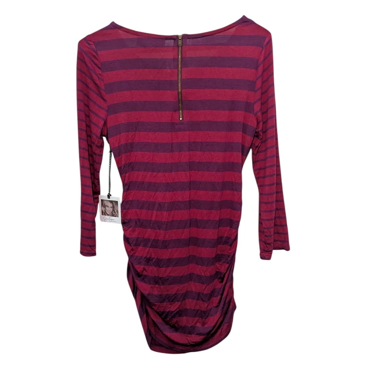 Jessica Simpson Maternity Tunic Top Striped Pink Purple Zipper Back Size Small S