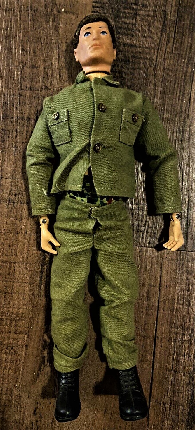 G I Joe 12" Figure 1964 Brown Flocked Hair Blue Eyes Scar Boots,Helmet,rifle