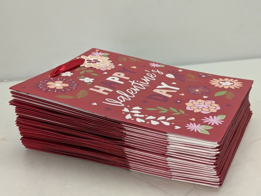 Pack of 20 CVS Red Happy Valentines Day Flower Gift Bags Paper Bags Red Tie