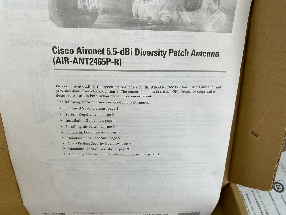 Cisco 2.4GHz 6.5dBi Diversity Patch Antenna w/ RP-TNC Plug AIR-ANT2465P-R - NEW