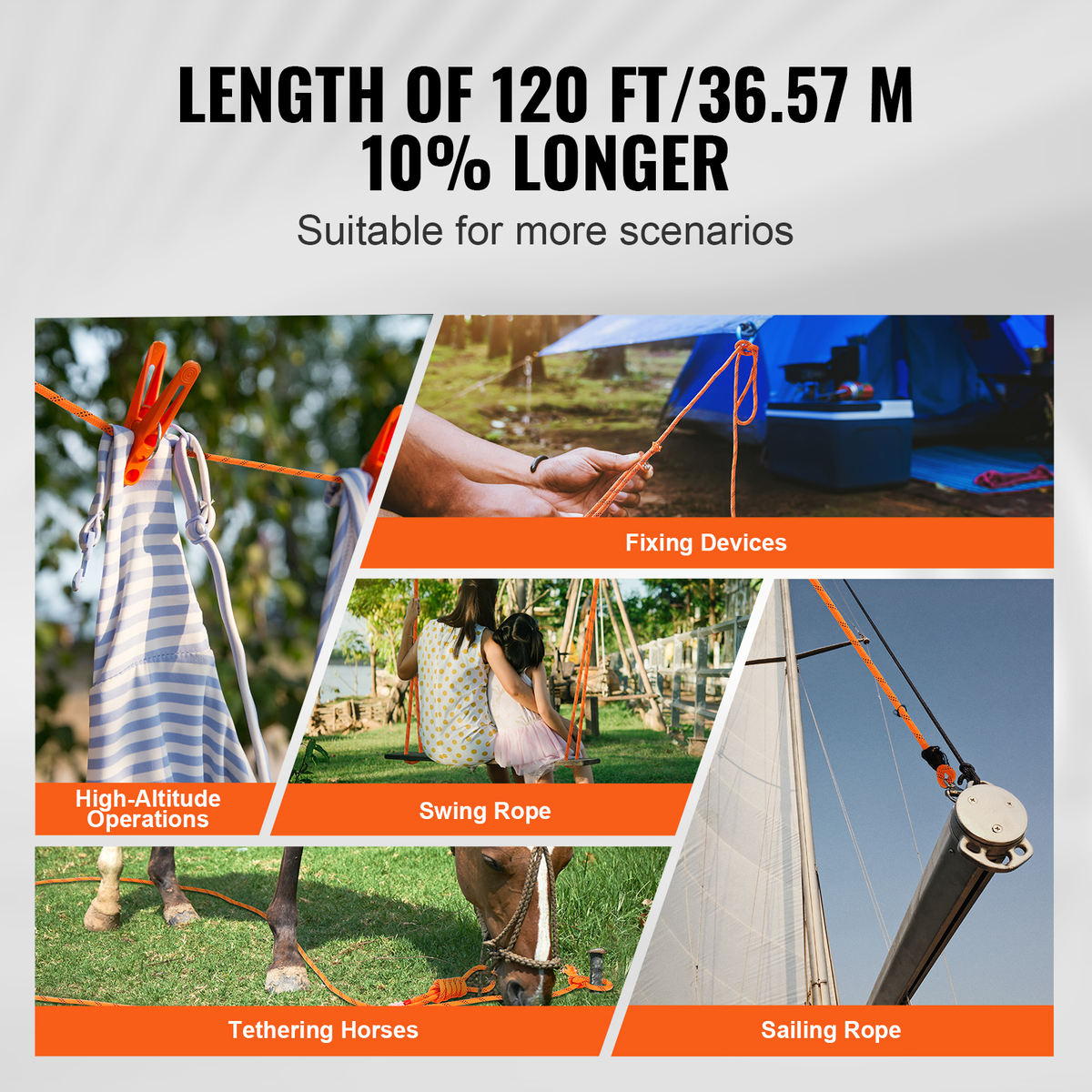10% Length Increase: With a 10% increase in length, our outdoor climbing rope now reaches an impressive 120 ft/36.57 m. That's as tall as a 12-story building! Perfect for all your daily aerial work needs, whether it's home projects or outdoor adventures.