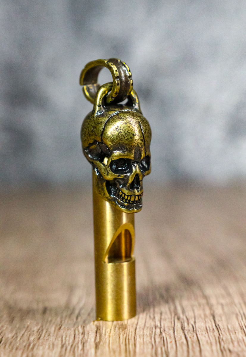 ? Elevate your personal style and safety with our Brass Skull Whistle - a unique and intriguing accessory that's both fashionable and functional. Crafted from high-quality brass, this whistle not only showcases a captivating skull design but also serves as a reliable and loud signaling device. Whether you're an adventurer, a fashion-forward individual, or simply someone who appreciates distinctive accessories, the Brass Skull Whistle is a must-have addition to your collection.