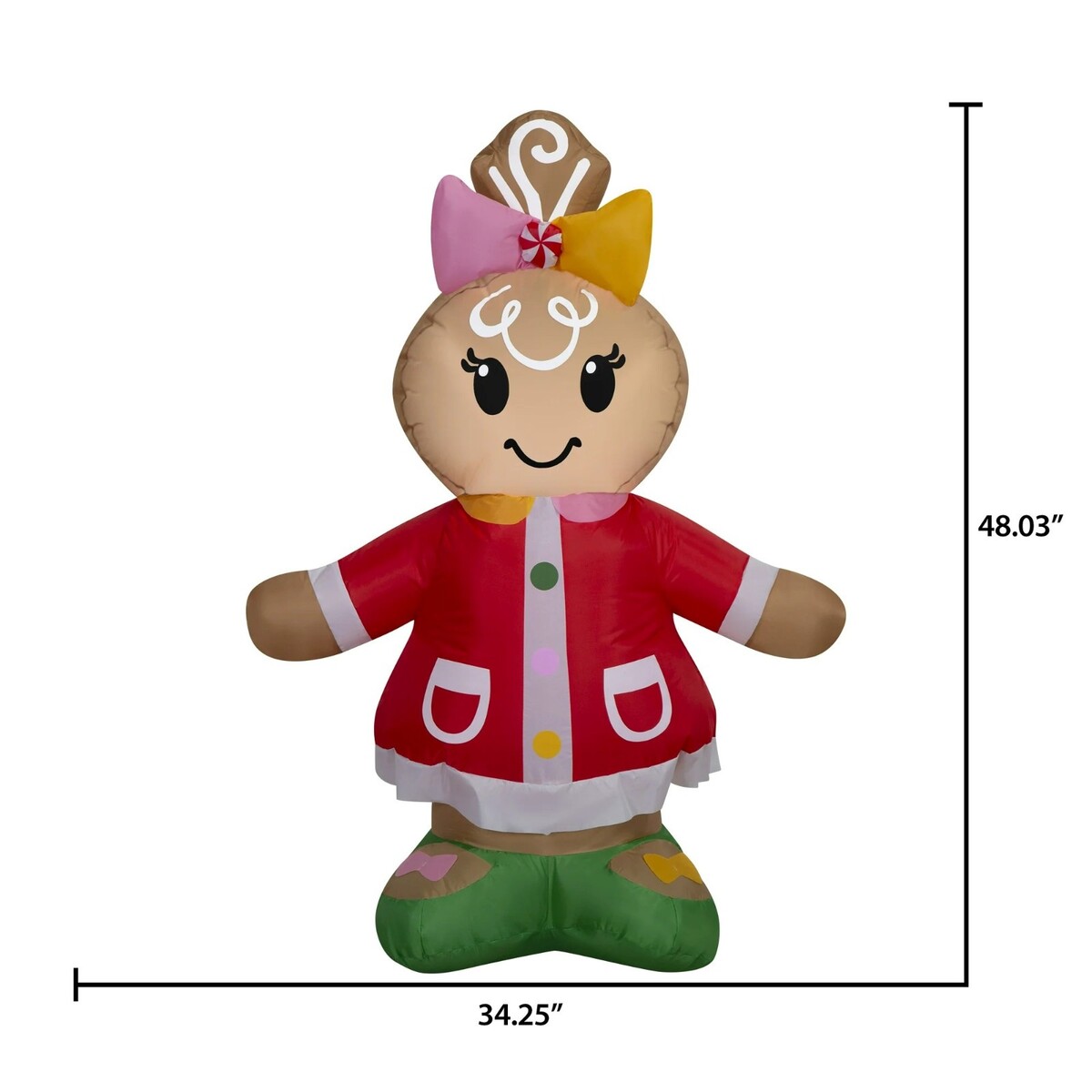 Holiday Time Multicolor Gingerbread Girl Christmas Airblown Yard Inflatable, 48"