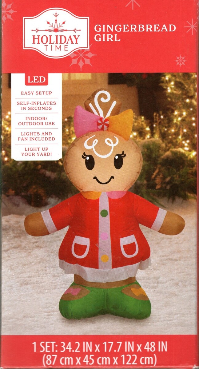 HOLIDAY TIME 886446 AIRBLOWN INFLATABLE GINGERBREAD GIRL LED 4' - NEW