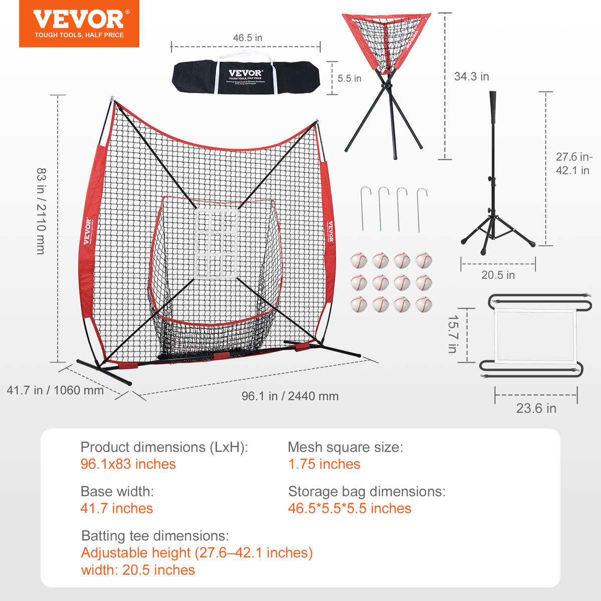 7x7ft Professional Training Set: Apart from the basic net and frame, this baseball softball practice net set also includes a square and nine-grid target frame, a batting tee, 12 baseballs, and a triangular collector. A professional and complete set of accessories helps players better practice pitching and catching, enhancing their skills swiftly. Plus, it comes with a dedicated storage bag for quick and convenient packing.
