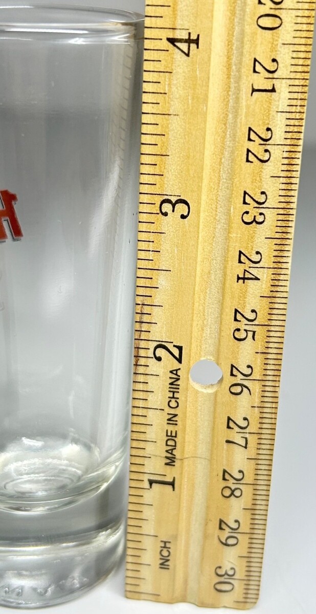 Hard Rock Cafe Barcelona Collectible Shot Glass 4" Tall Yellow & Red Logo