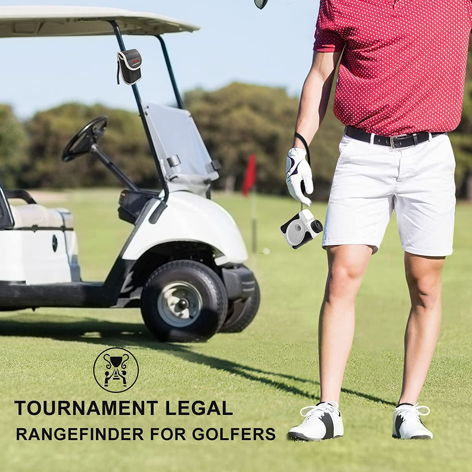 Tournament legal golf rangefinder: The rangefinder provides accurate yardage and flag-lock distance.It without slope compensated distance,let the tournament is legal.This is a gift choice for golf fans.