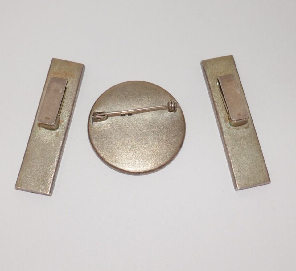 Sterling Silver 925 Modernist Amber Inlay Clip On Earrings & Brooch Pin