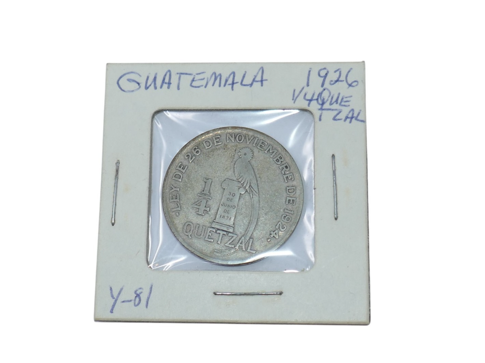Guatemala 1926 Silver 1/4 Quetzal Coin and 18 similar items