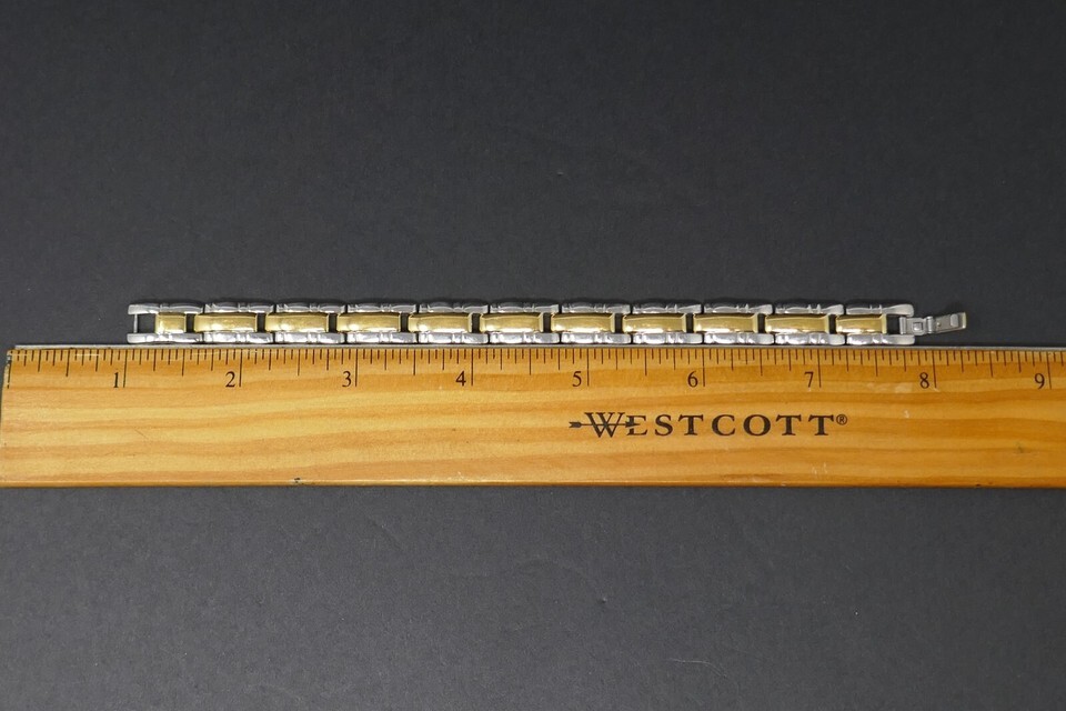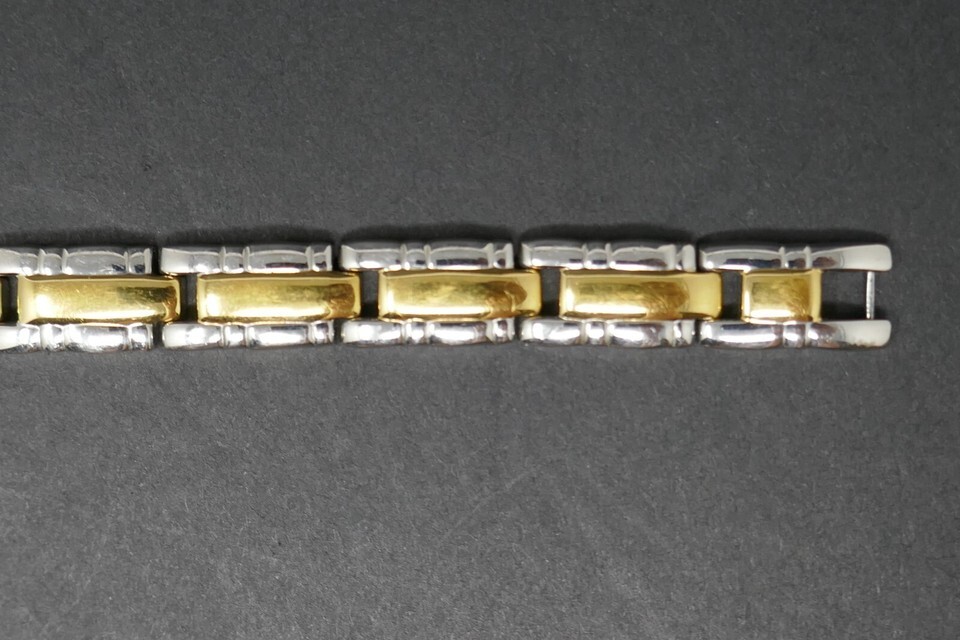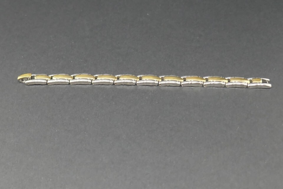 24K Gold Plated Two Tone Rectangle Panel Link 7 in Bracelet