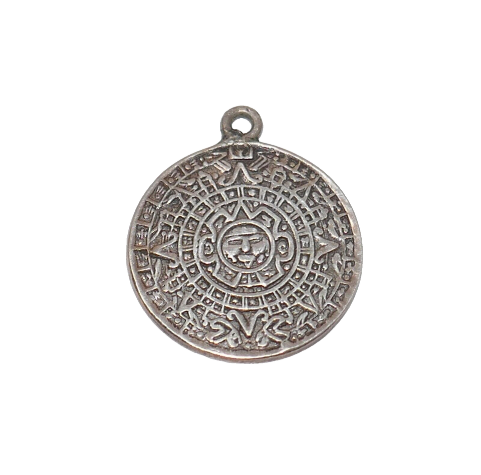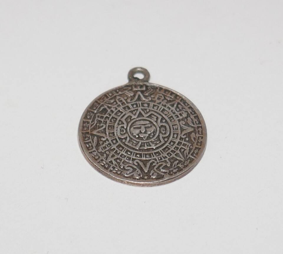 Mexican Sterling Silver Aztec Mayan Sun Calendar Pendant