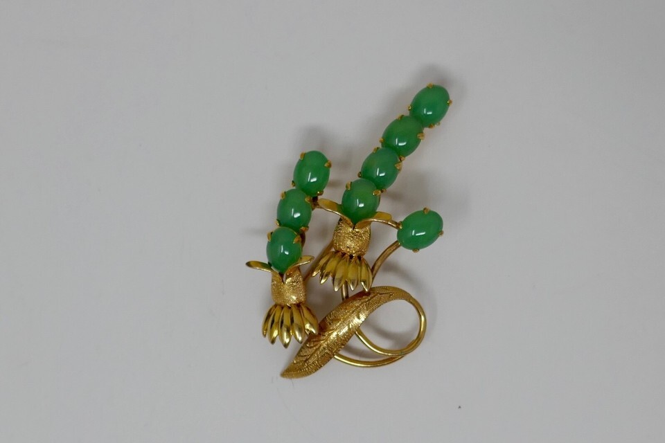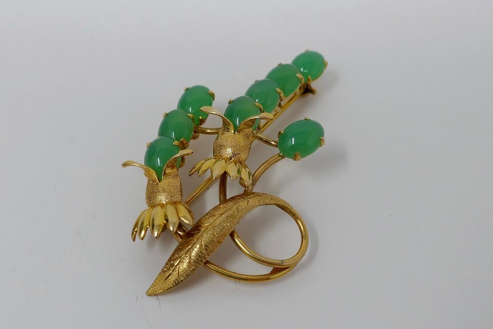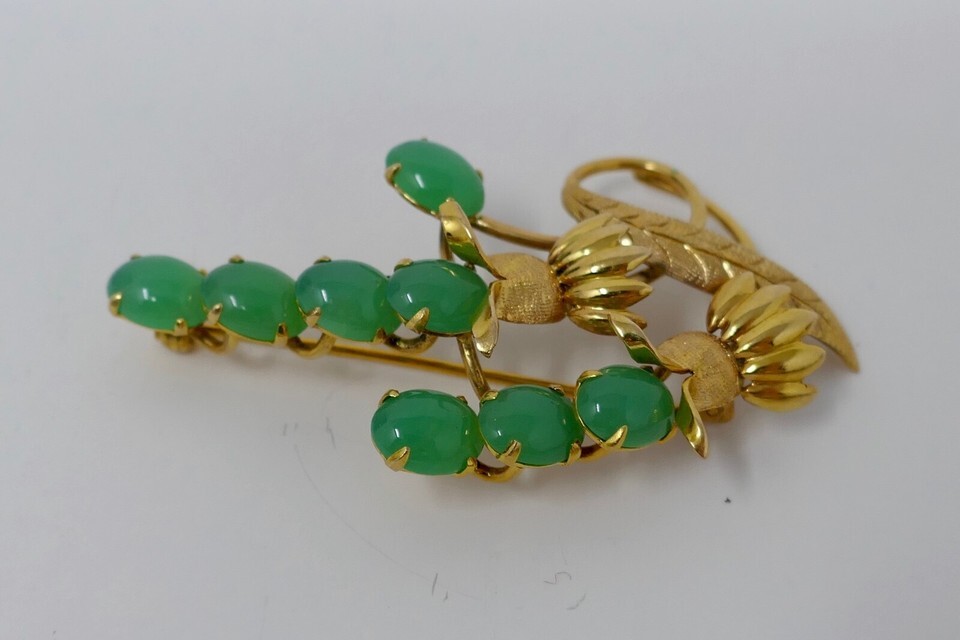 Authenticity Guarantee TYL Ty Lee 14K Yellow Gold Chrysoprase Brooch Pin