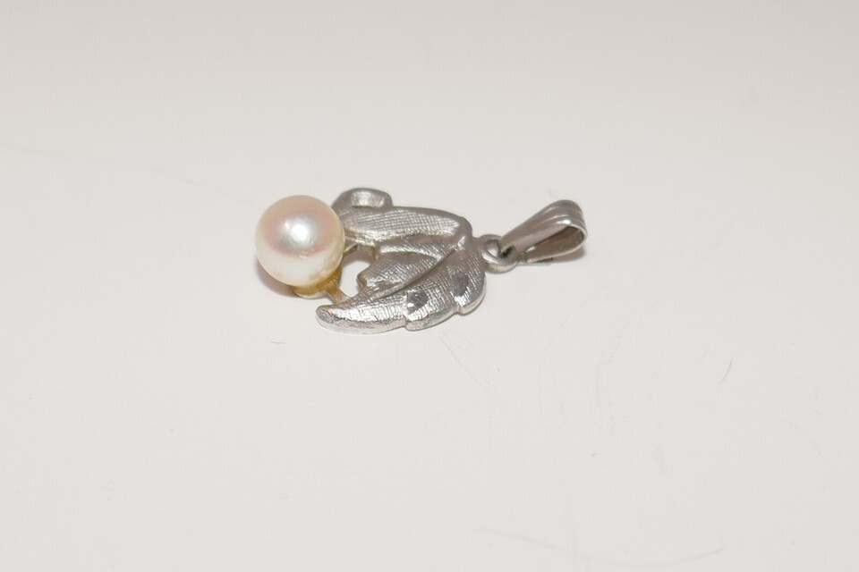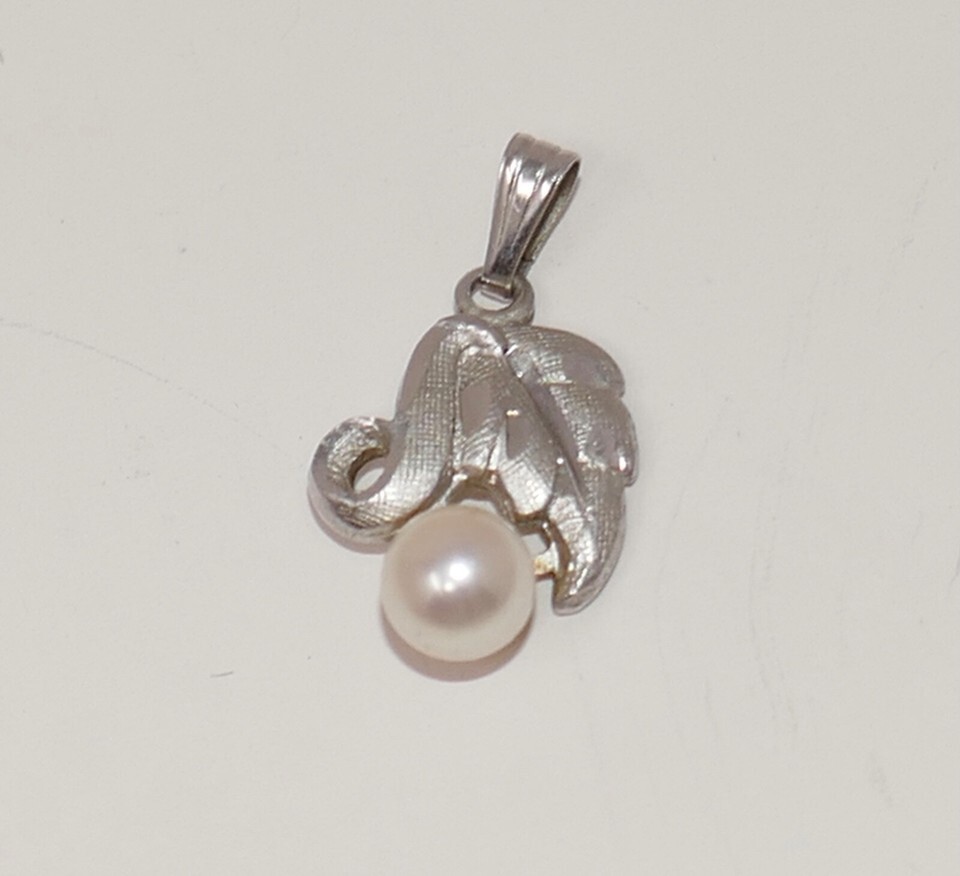 Imperial Pearl Syndicate IPS Sterling Silver 925 Pearl Leaf Charm Pendant
