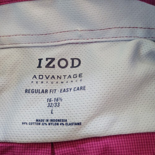 Izod Advantage Performance Mens Wild Berry Button Down Collar Shirt Size L 32/33