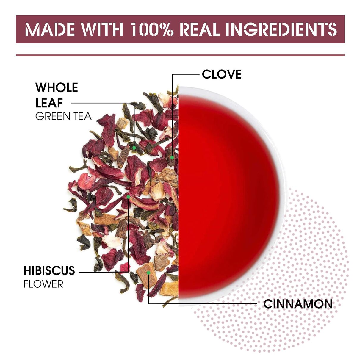 whole green tea leaves, and organic hibiscus flowers |