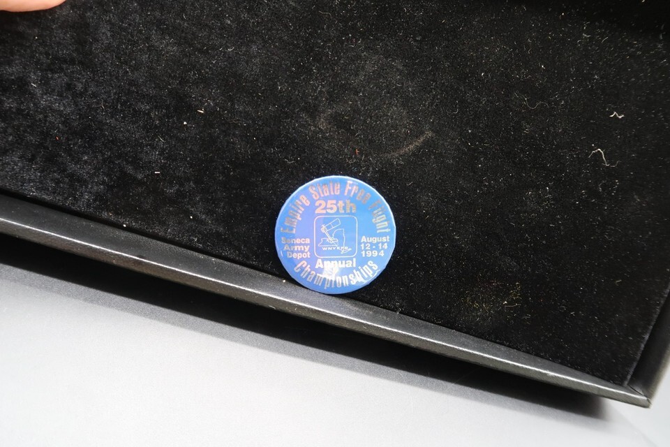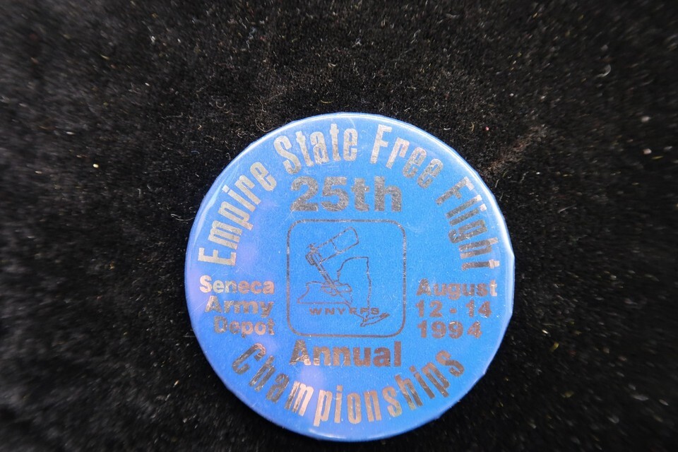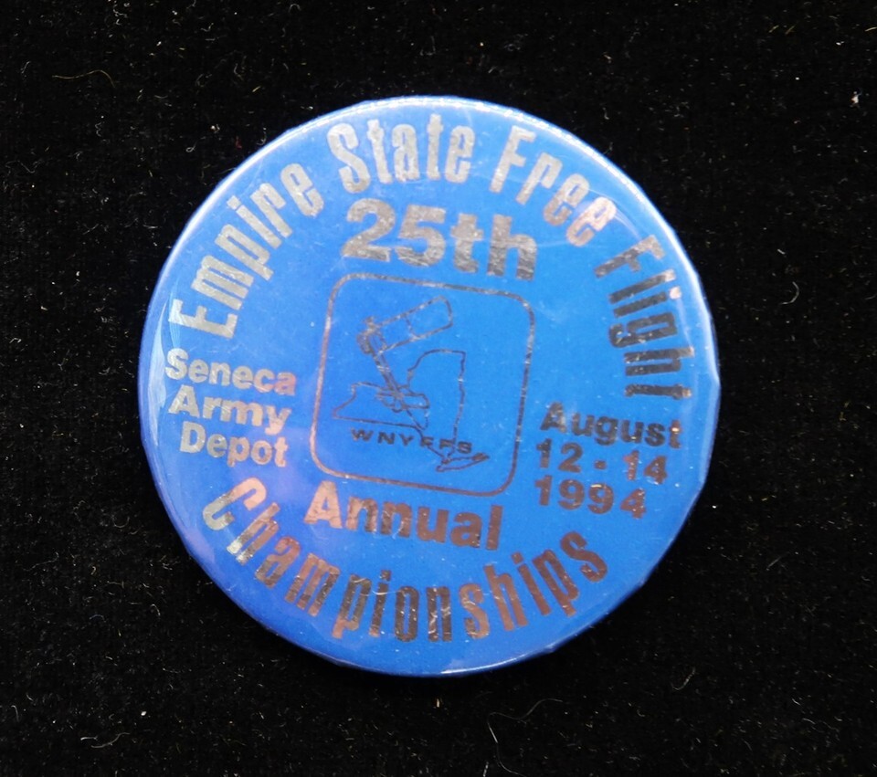 Vtg Pin Button 25th Empire State Free Flight Championships Seneca NY Army Depot