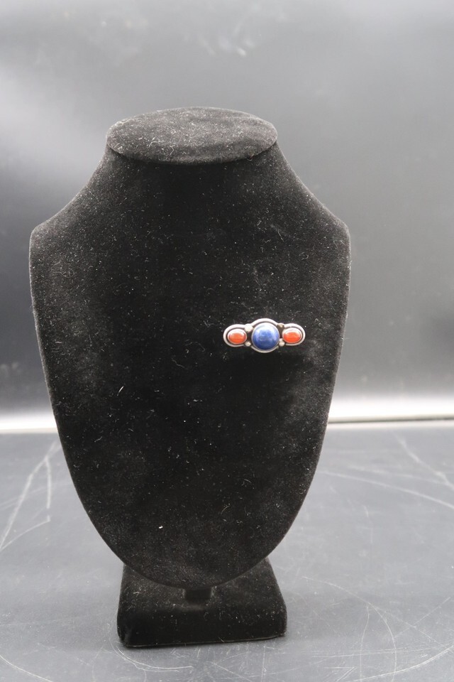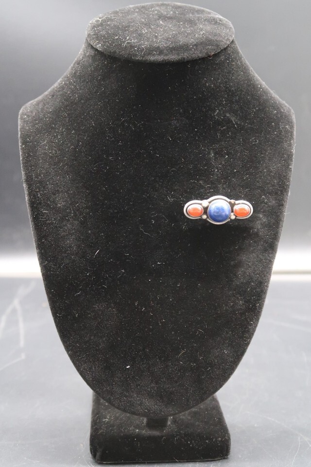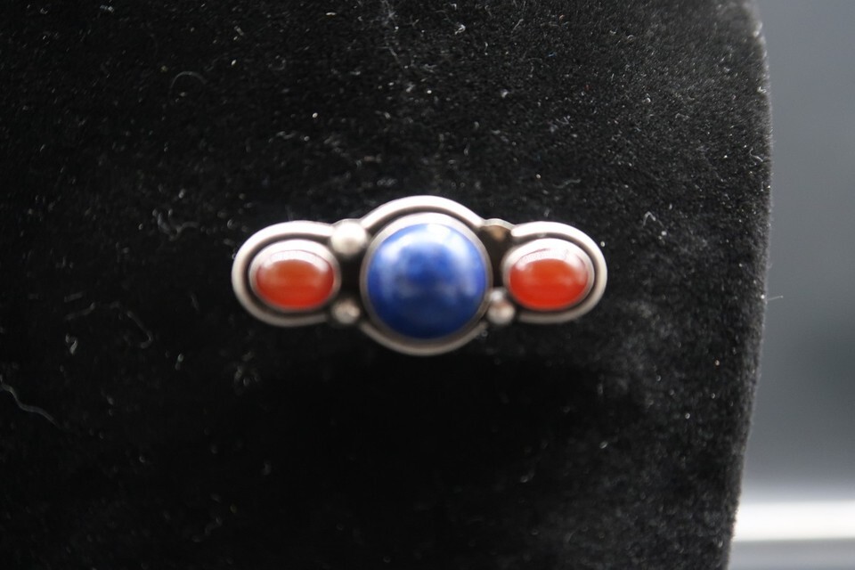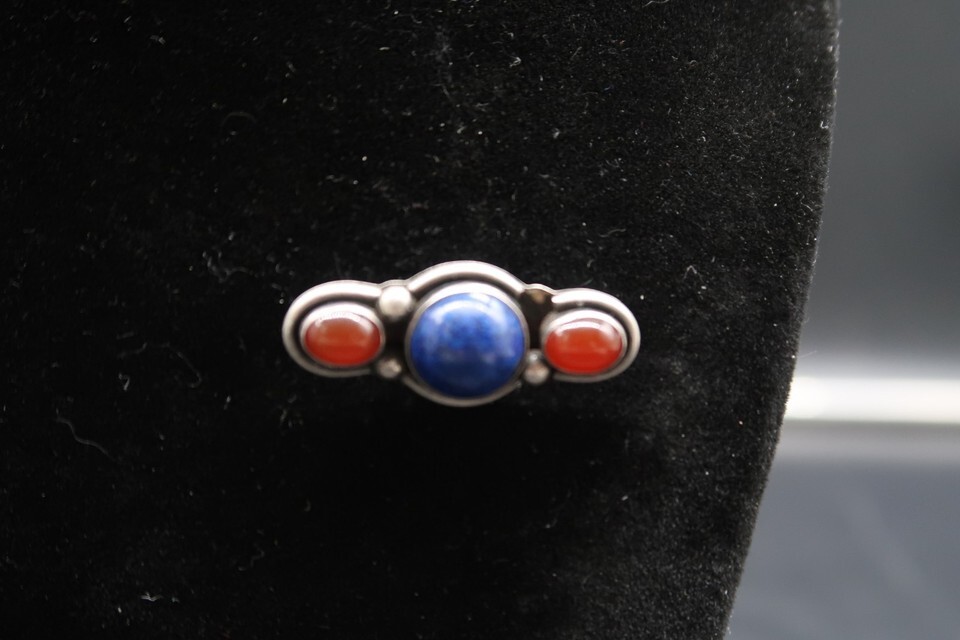 Vtg Sterling Silver Lapis & Coral Bar Brooch and 50 similar items