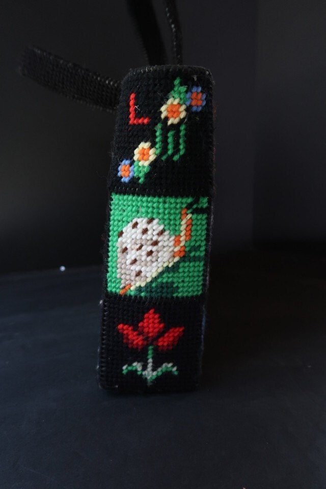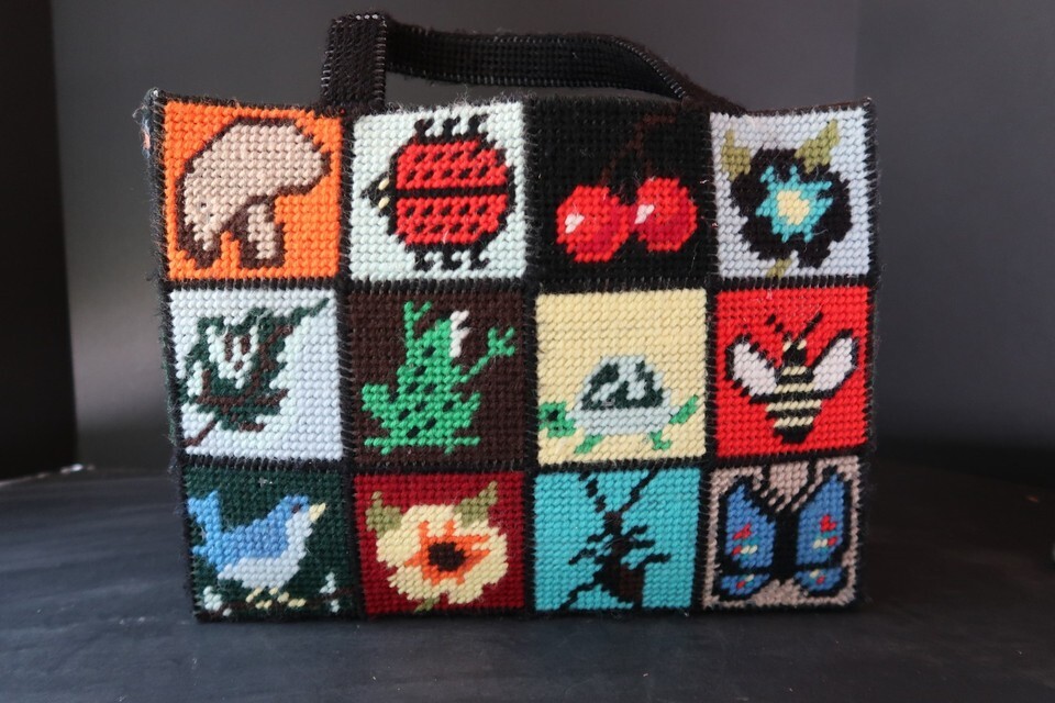 Vintage 70s Needlepoint Ecology Tote Bag Purse | Bob Miller | Columbia Minerva