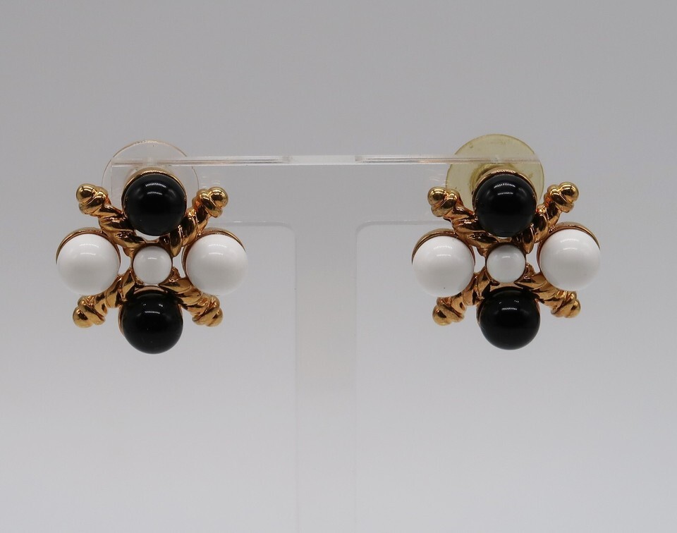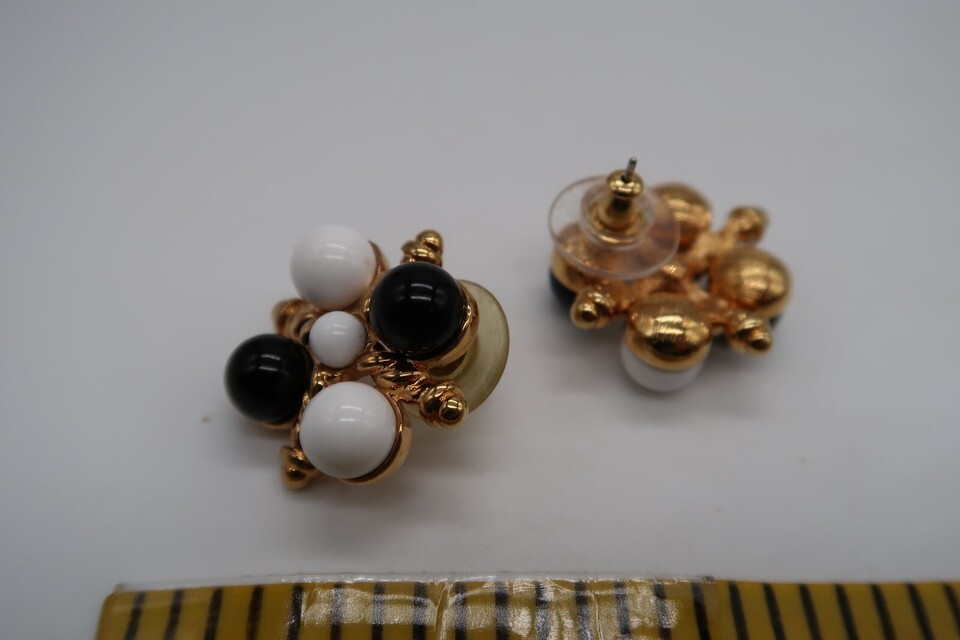 Vintage Monet gold tone black & white bead nautical feel post earrings