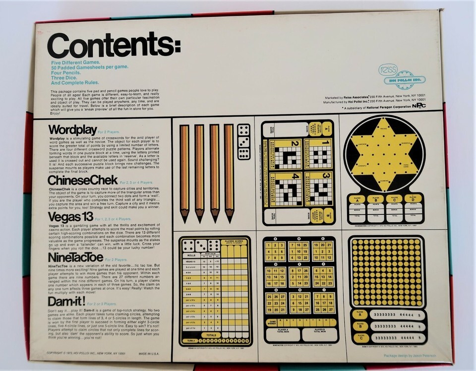 Vtg 5 Games People Love to Play Pad & Pencil 1973 Reiss Hoi Polloi Inc