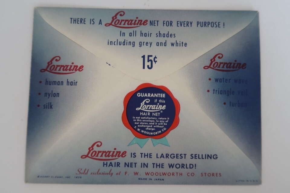 1930s Lorraine Woman's Hair Net in Original package Real Human Hair