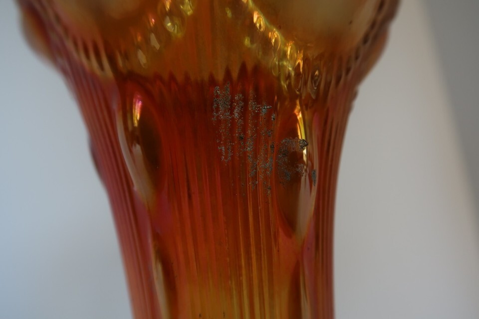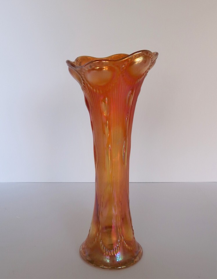 Vintage Imperial Marigold Carnival Glass Beaded Bullseye Pattern Tall Vase