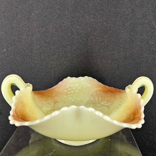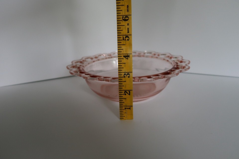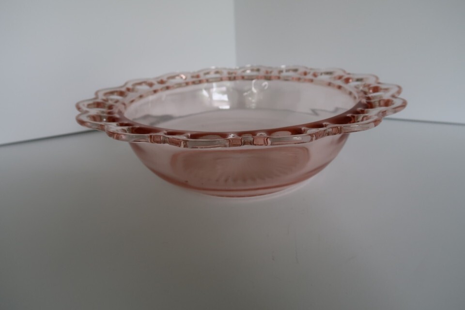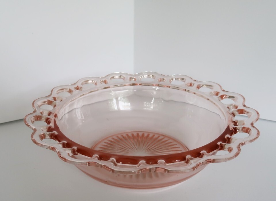 Vintage pink depression glass console bowl reticulated edge