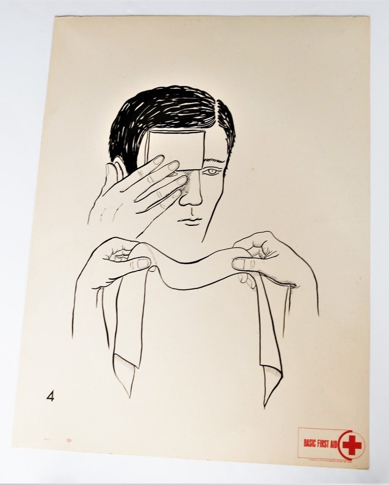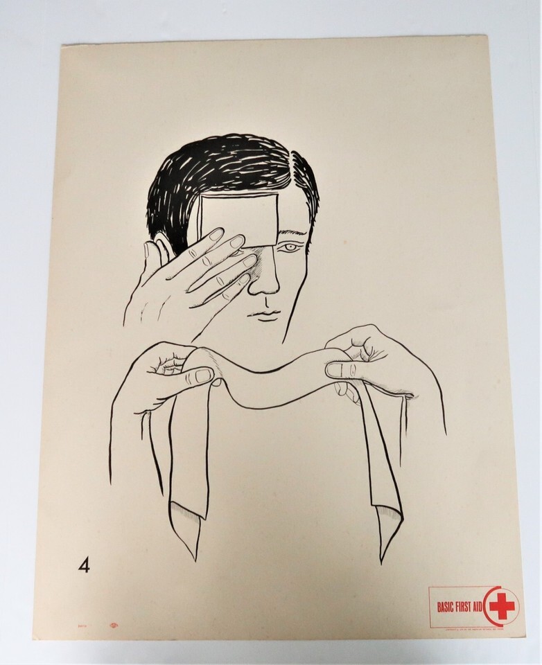 Vtg American National Red Cross Basic First Aid Drawing 2 Side Ephemera 1970 4,1