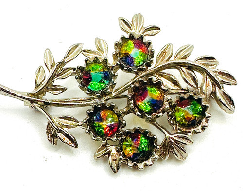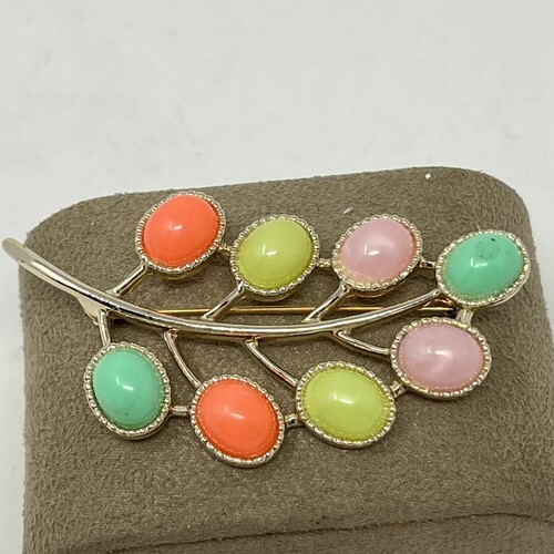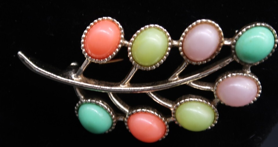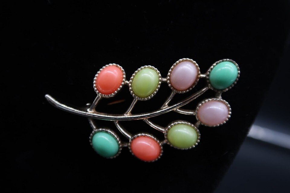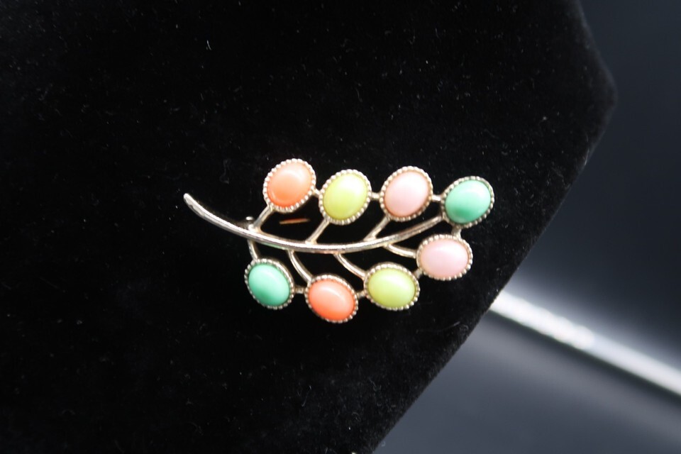 Vintage Sarah Coventry Candy Land Leaf Brooch Pin Pastel Cabochons Spring Vibes