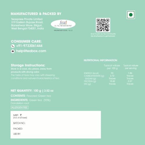 Teabox Premium Organic Green Tea With Dandelion Roots | 100% Whole Leaf Green Te