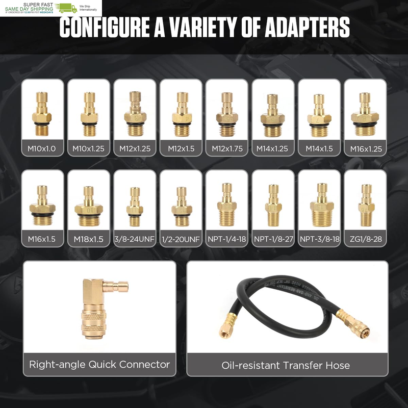 5pcs fitting adapters, 2 test lines and 2 connecting lines