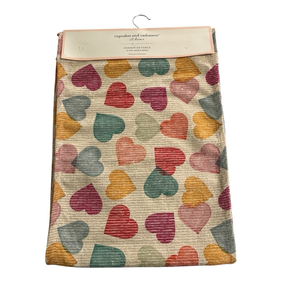 Cupcakes Cashmere Table Runner Textured Colorful Heart Print Pink Fringe 16x90 Valentines Day Love Engagement Anniversary Party