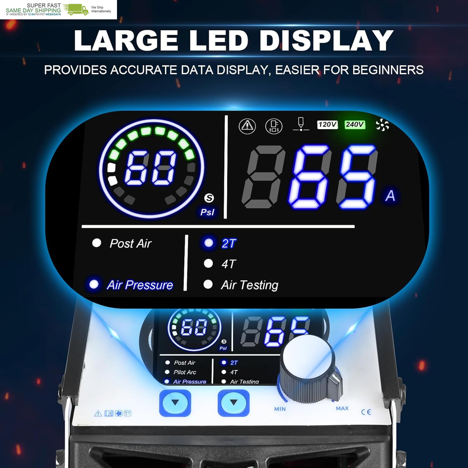 120/240V Dual Voltage,Plasma Cutter 65 AMP Touch Arc Plasma Cutter Machine Digi