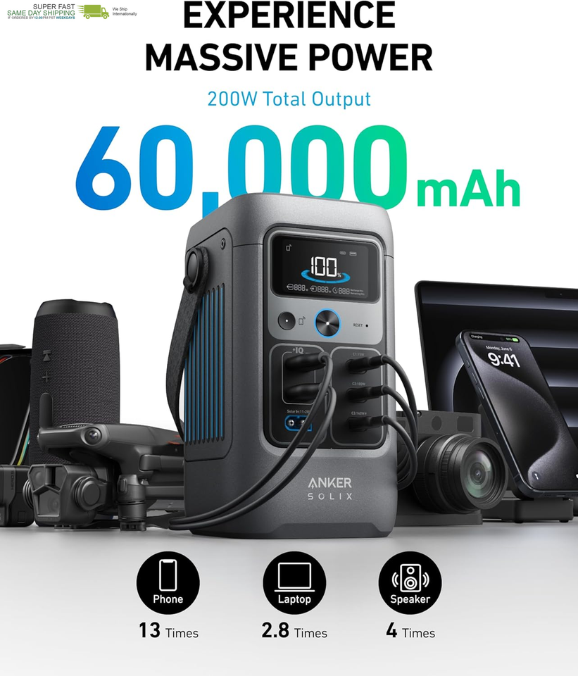 Massive Power Anywhere: This 192Wh battery delivers 200W and includes one 140W two-way USB-C fast charging port.