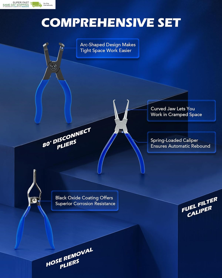 Work in Tight Spaces: From long-reach cable pliers to swivel jaw and angled designs, our fuel hose repair tool set is crafted to access hard-to-reach clamps and hoses in cramped engine bays with ease