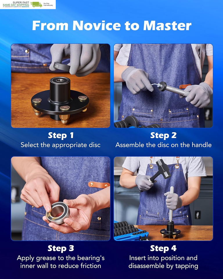 EASY OPERATION: This auto tool kit includes a long handle shaft to simplify bearing race and seal replacement and help you remove or install wheel bearings quickly and professionally.