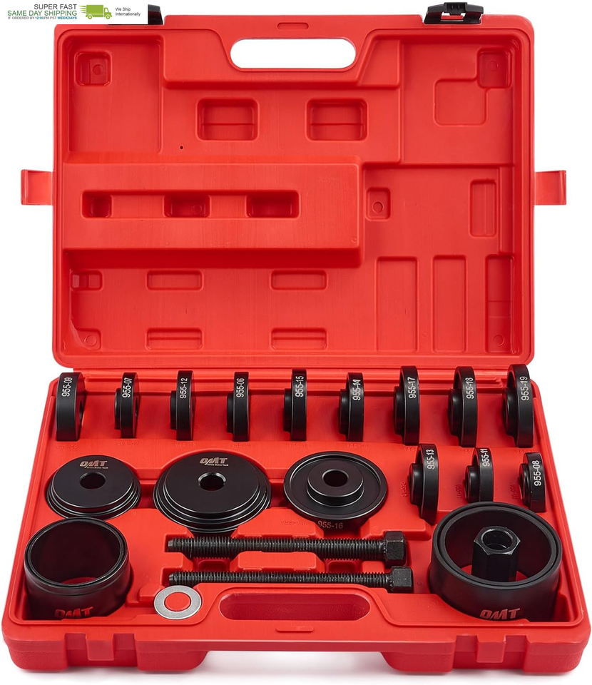 COMPACT PORTABLE: This 24 piece front wheel bearing press tool set comes with a blow-molded storage case, keeping everything organized and easy to carry from home garage to workshop