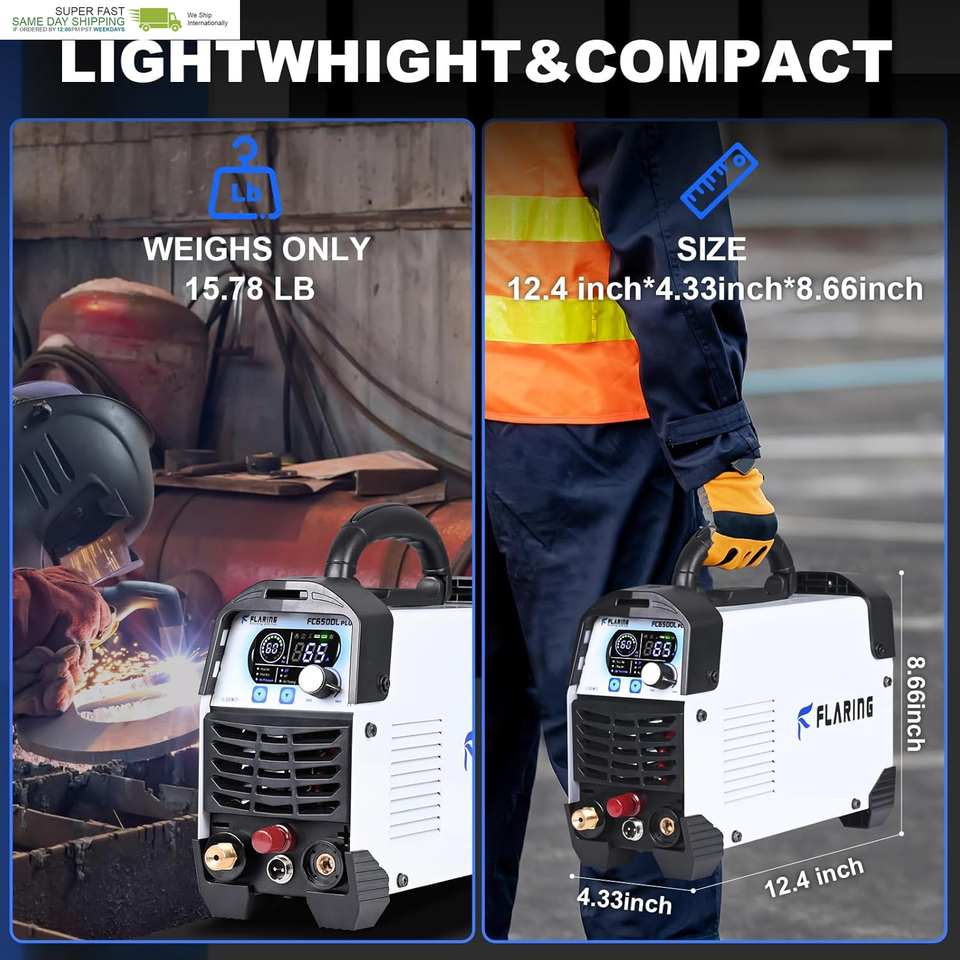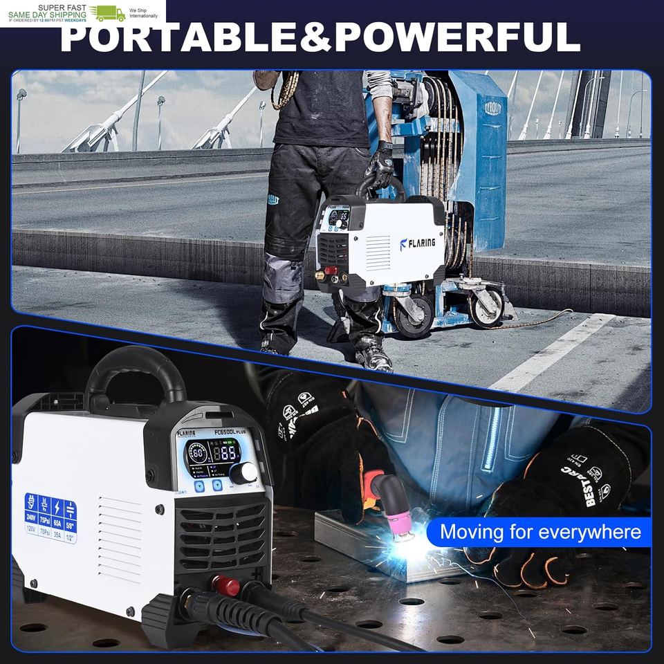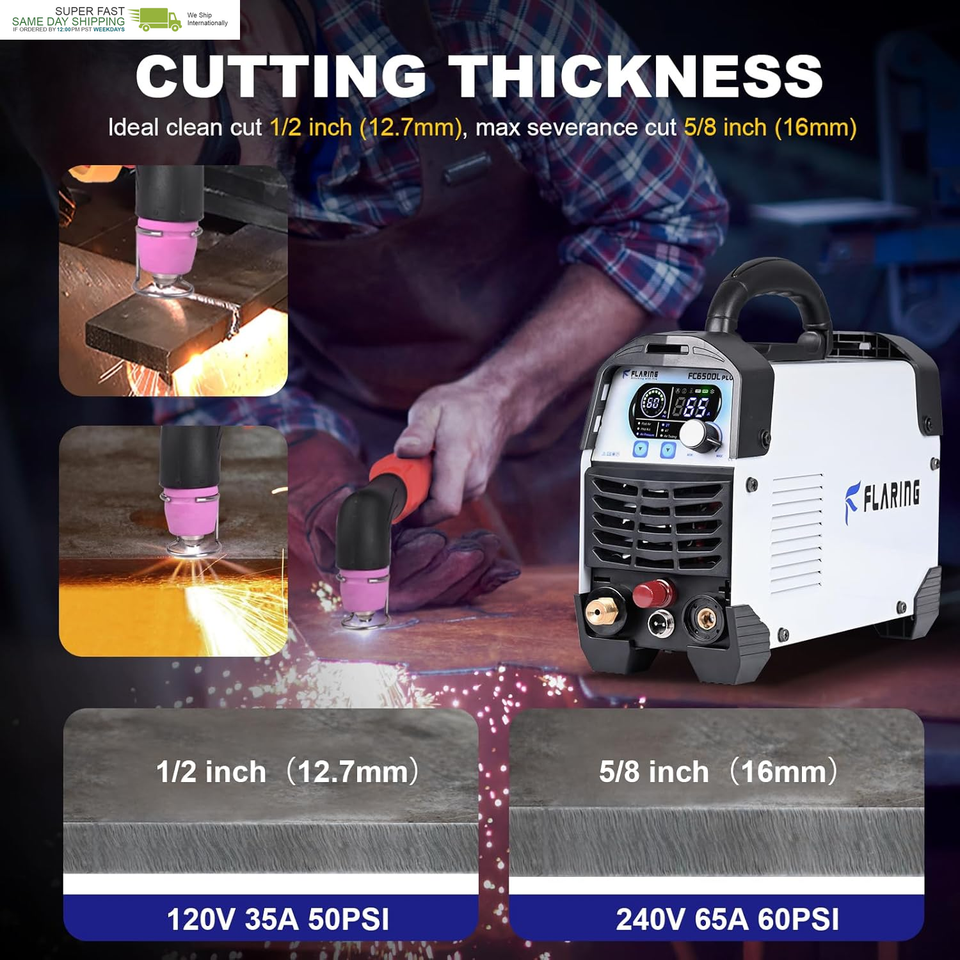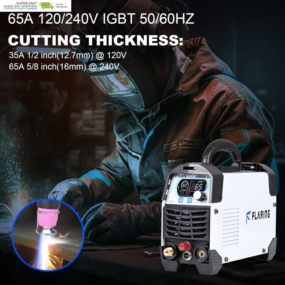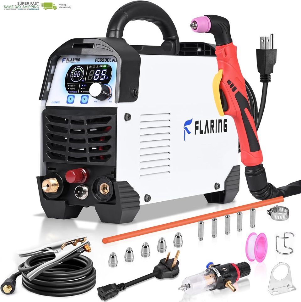 FLARING FC650DL PLUS Plasma Cutter 65 AMP Non Touch Pilot Arc Plasma Cutter Machine 120/240V Dual Voltage, Digital Display, High Frequency IGBT Inverter, Post Air/2T/4T, 5/8" Clean Cut with Consumable