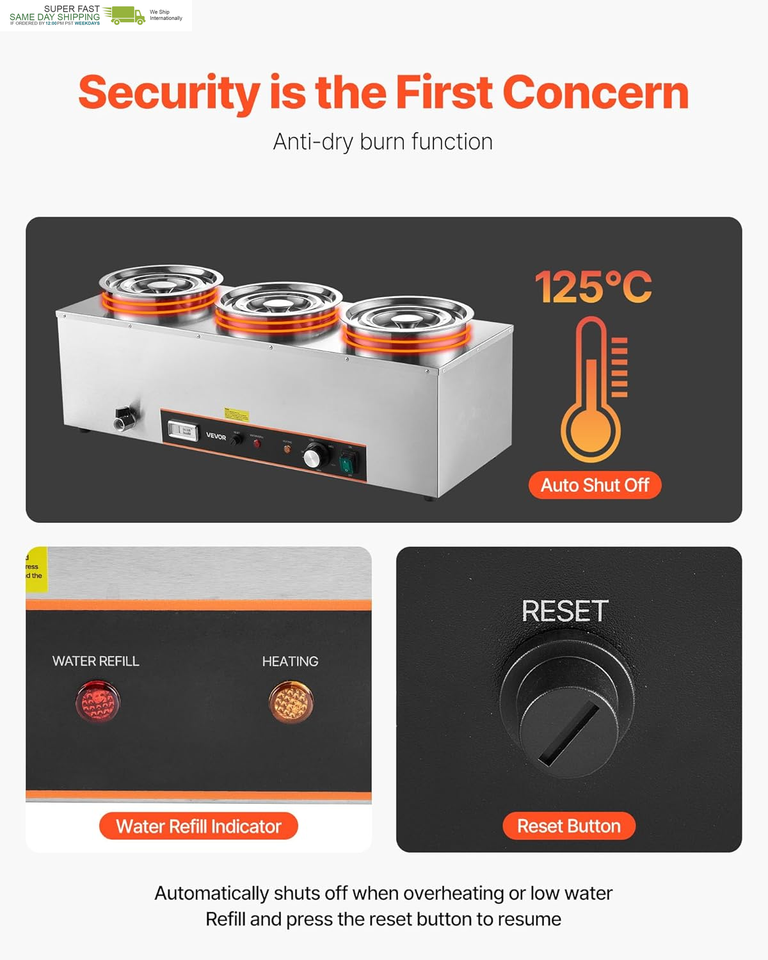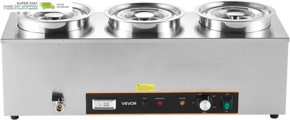 Easy to Use: This soup station boasts a drain faucet for easy drainage and heating/dry burn indicators to show the warmer?s status. The main power switch lets you turn off the unit with one press, eliminating the need to plug/unplug frequently
