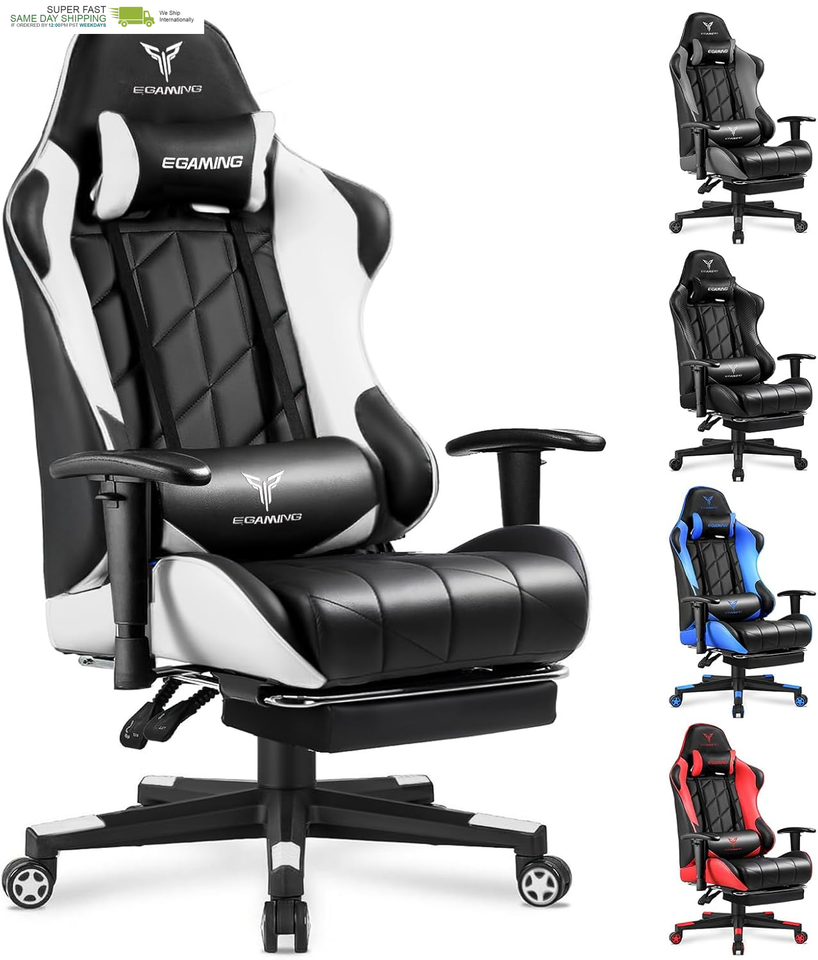 Ergonomic Gaming Chair: The EXRACING gaming chair comes with an embroidered ergonomic headrest and lumbar pillows that can perfectly fit your body?s contours and provide extra support for your back. The chair's memory foam cushion and memory foam help reduce the strain on your body caused by prolonged sitting. It can help you maintain a healthy posture while gaming and working.