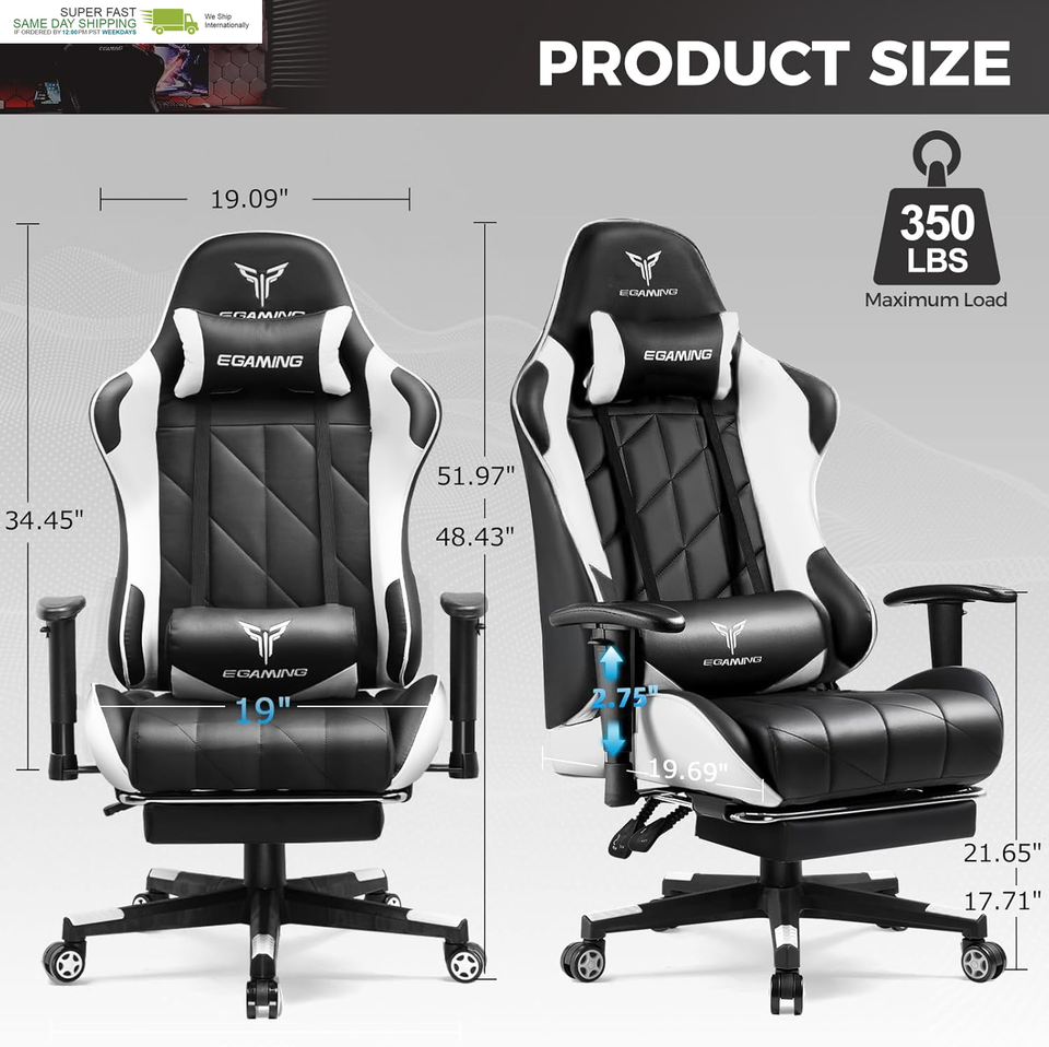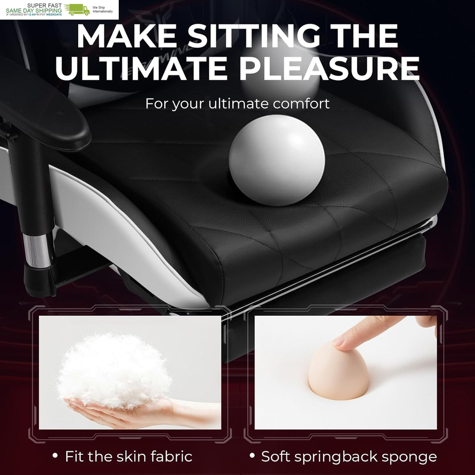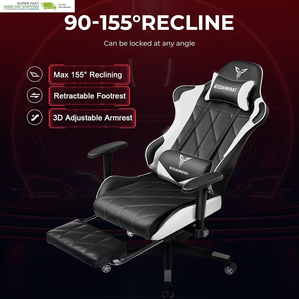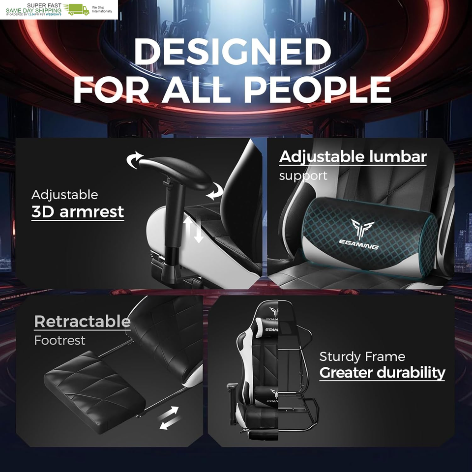 High-Quality Materials: This high-back computer chair is well-crafted, we use high-quality PU leather material and embroidery to make the chair both functional and aesthetically pleasing. The chair has a weight capacity of 396 pounds, and its stable and sturdy material structure can provide support for gamers of all sizes. In addition, the upgraded support gas rod also extends the chair?s life expectancy .