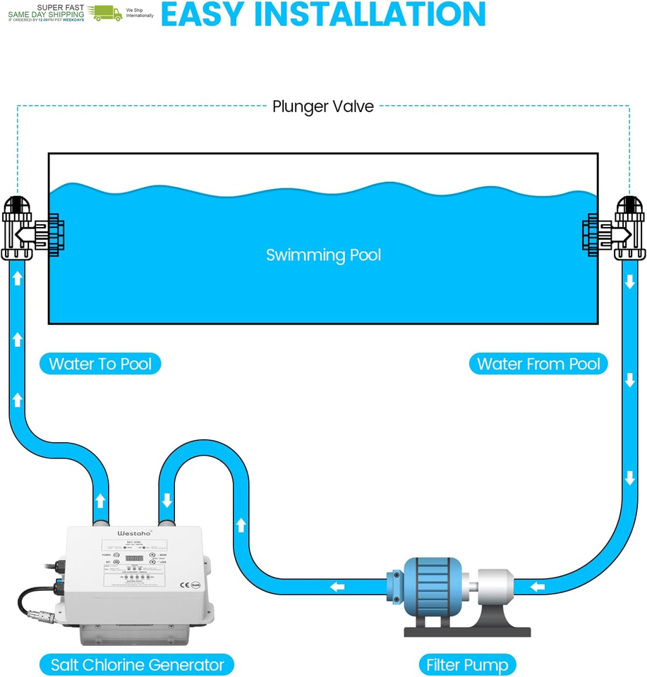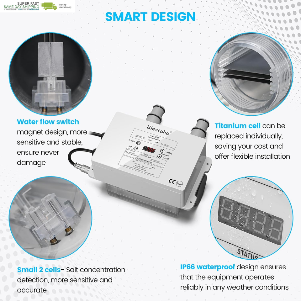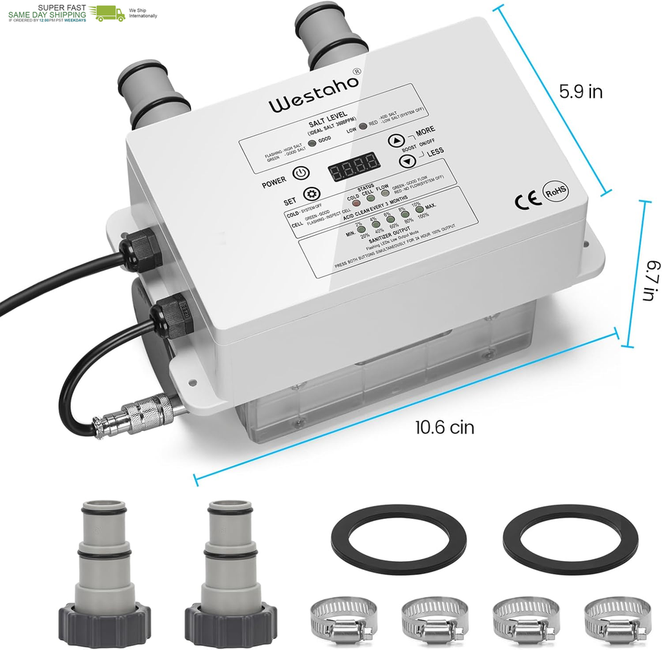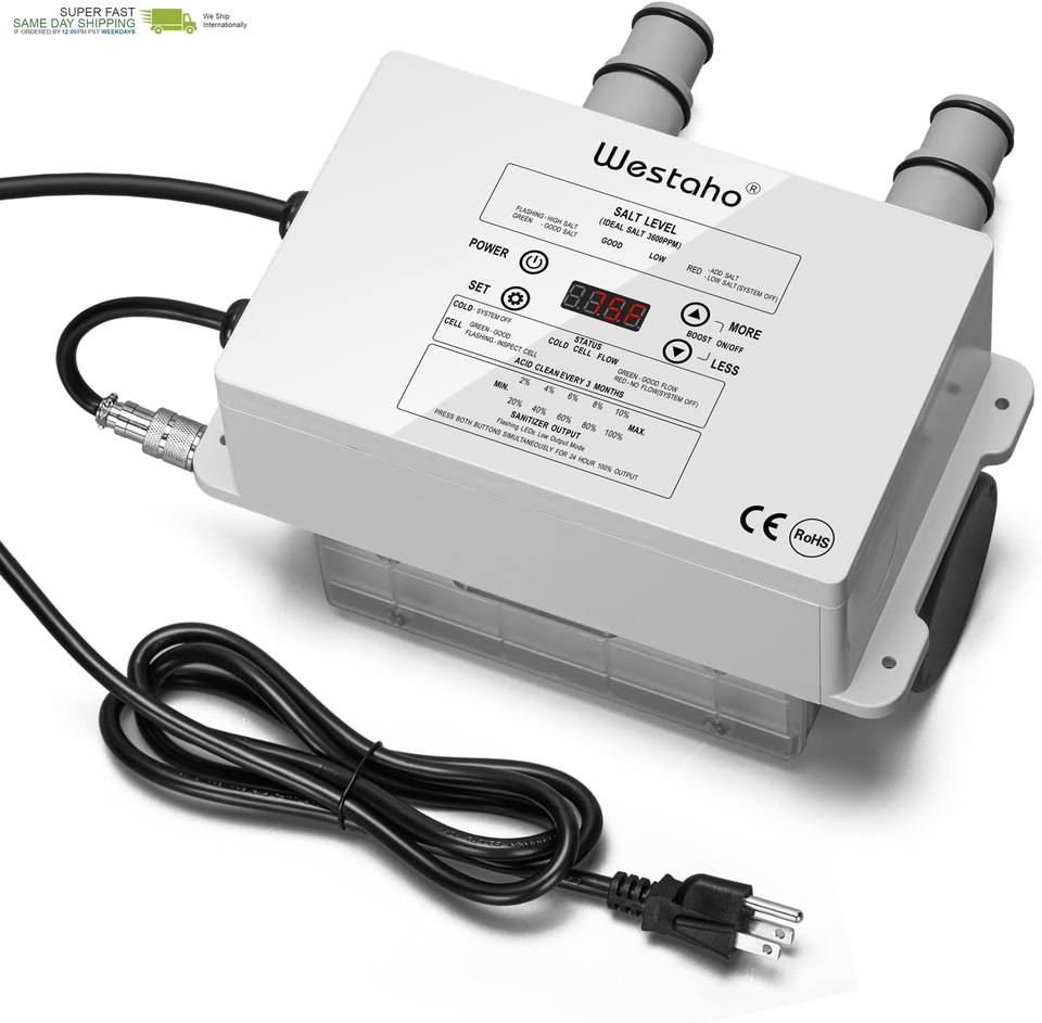 Dive into endless freshness and enjoy a new life by the pool! The Westaho Salt Chlorinator delivers crystal-clear water for above-ground pools up to 15,000 gallons