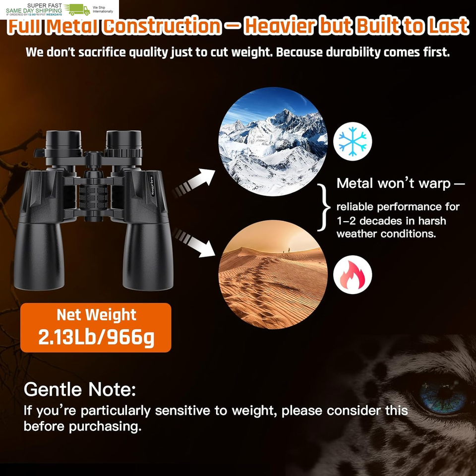 Weight Reminder--the binoculars design requires a metal barrel to ensure stability, and it is recommended to use a tripod (not portable). Additional purchase: B0D9TK1D64.Certified by Amazon Climate Pledge Friendly, it is made of environmentally friendly materials and supports sustainable development!