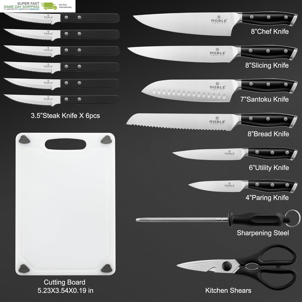 Knife Set with Block, N NOBLE FAMILY 16Pcs Kitchen Knives Drawer Organizer Set w