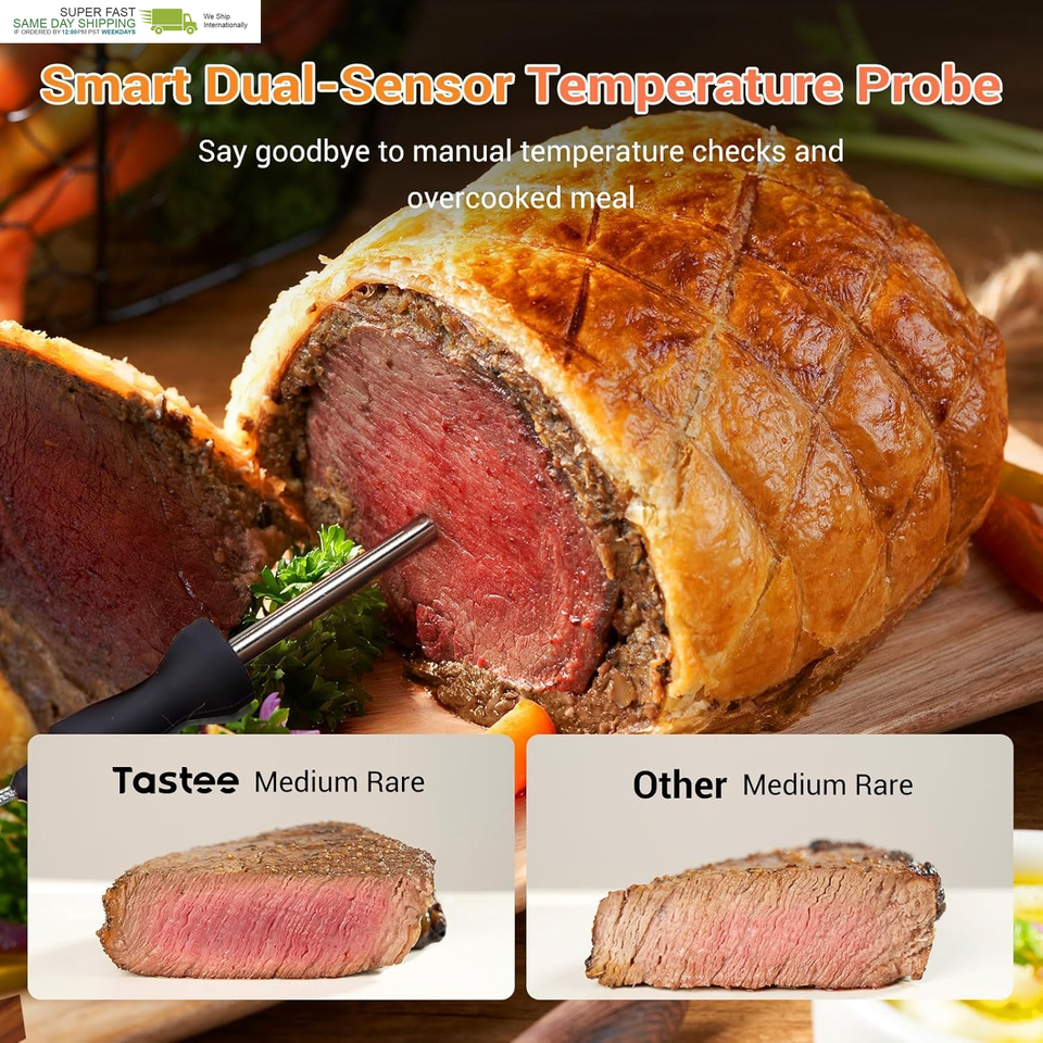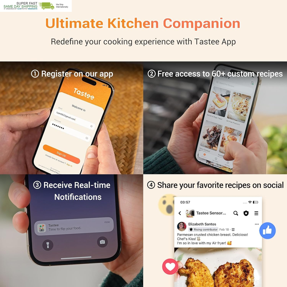 [Perfection Consistency ] Equipped with a dual-sensor thermometer and see-through window, our SensorMagic smart air fryer automatically monitors the meat temperature to deliver perfect results every time. The 3-speed fan airflow system ensures every meal is golden, crispy, and juicy, delivering delicious food faster.