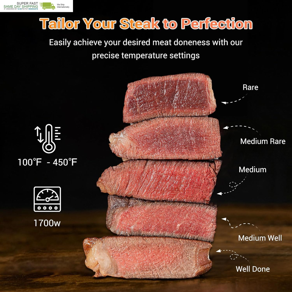 [Compact Design] With a 5.5QT capacity, our compact air fryer is perfect for preparing family-sized meals quickly and conveniently. The innovative 2-in-1 grill is ideal for toasting bread or perfectly grilling your favorite meats.